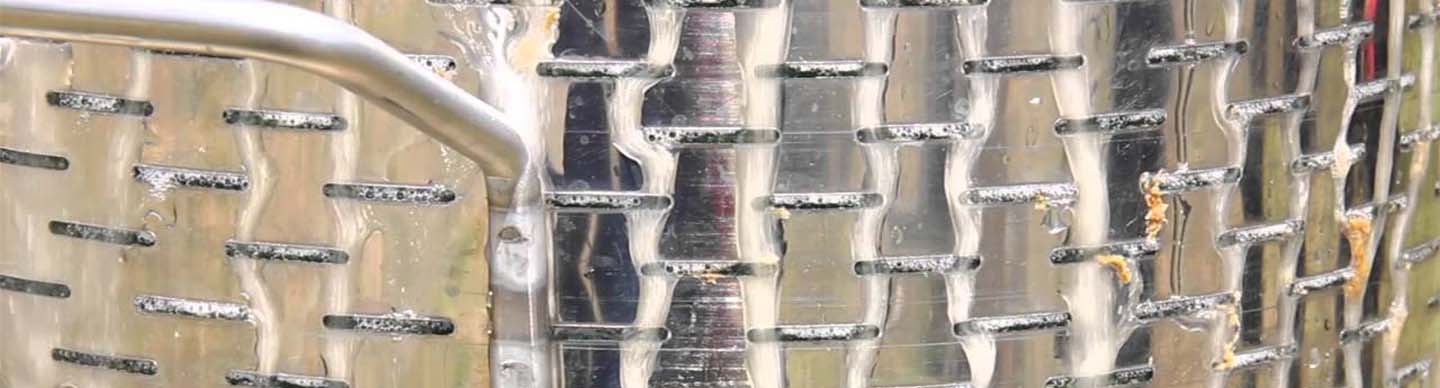Presiunea apei de la furtunul de gradina extinde o membrana din cauciuc si comprima materialul macinat prin ochiurile special concepute de la cosul hidropresei.